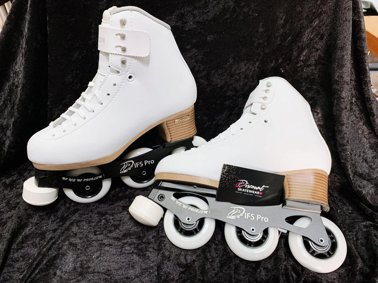 IFS Pro wheel frame set is specifically designed for the recreatrional to intermediate freestyle skater and intermediate to pro level dancer. This frame is equipped with a highly finished powder coated aluminum and evenly spaced wheels for better balance, moves, edge jumps and spins. Comes equiped with ABEC 9 bearings, adjustable height toe pic and Outdoor wheels.Â