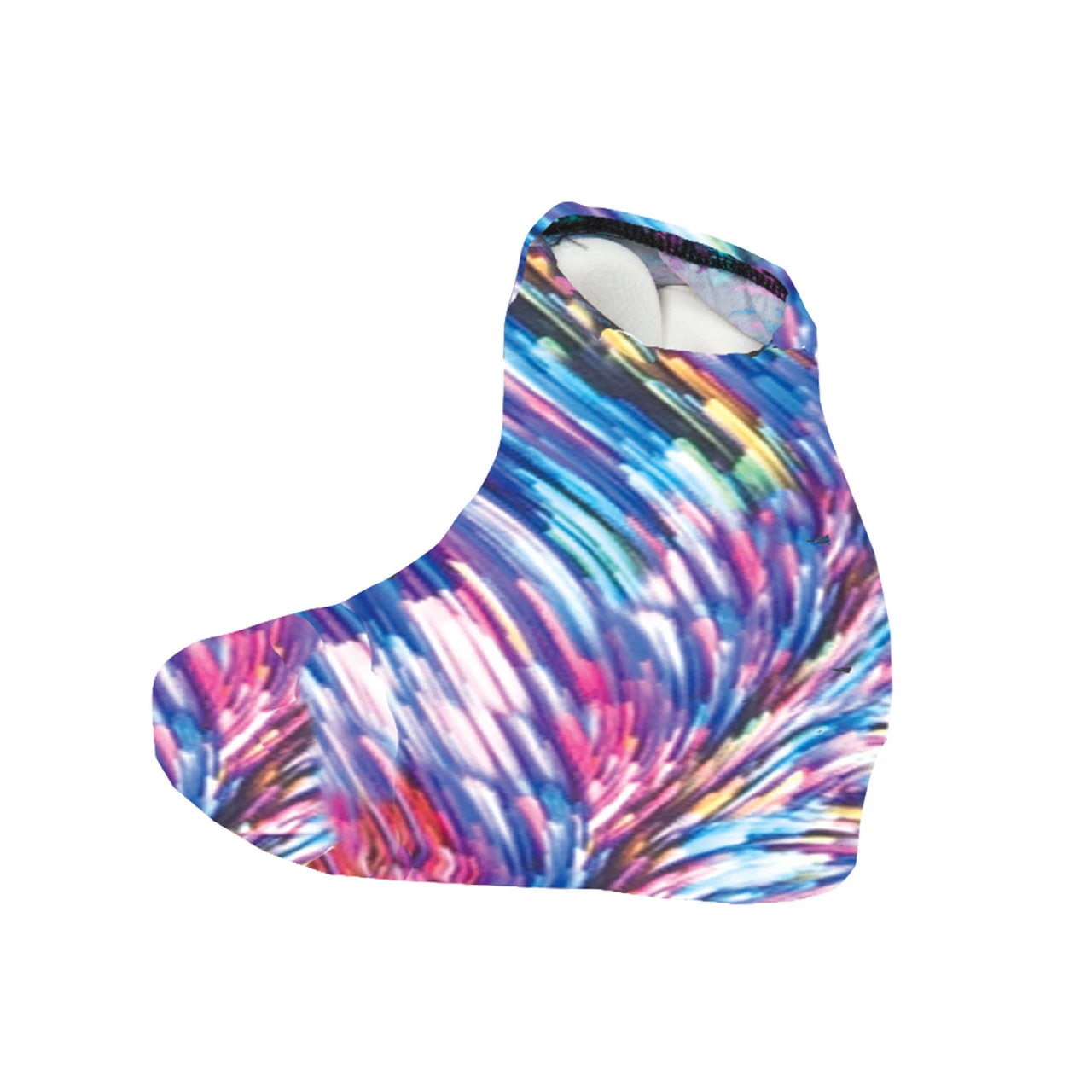 Jerry’s Skating World designed colorful print Lycra boot covers.