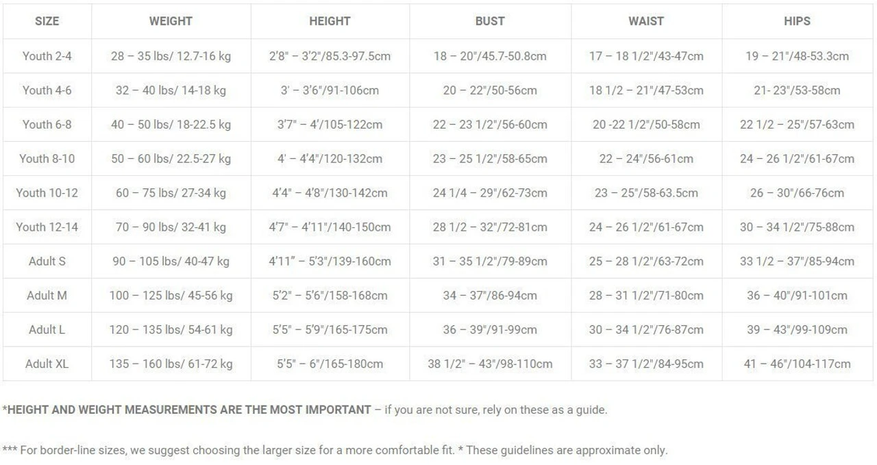 Sizes: Youth 4-6, 6-8, 8-10, 10-12, 12-14