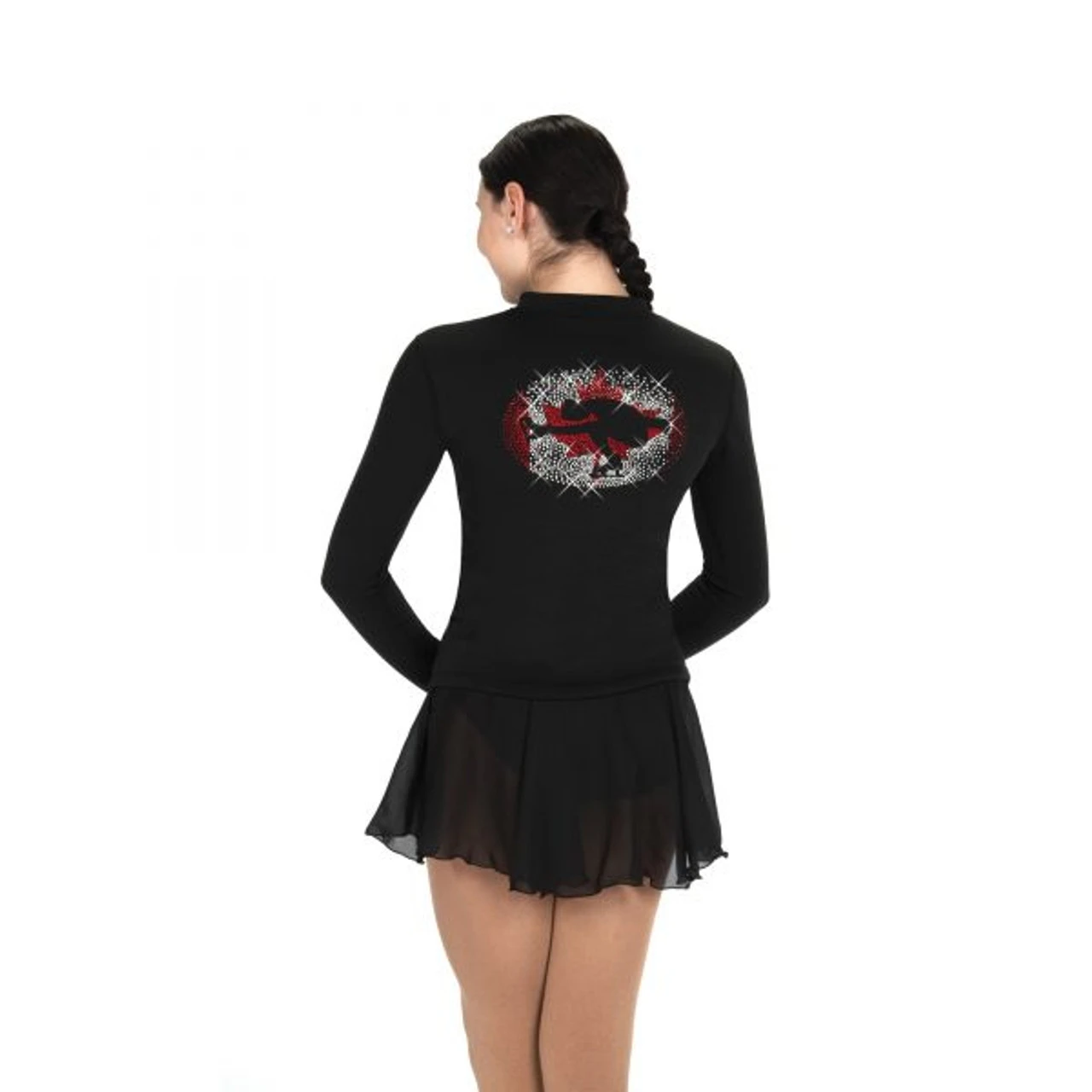 Jerry’s Skating World brings the world to figure skaters in every country. Flaunt your flag in our power fleece jacket with sparkling crystals outlining a sit spin silhouette against flags of all countries at the back.