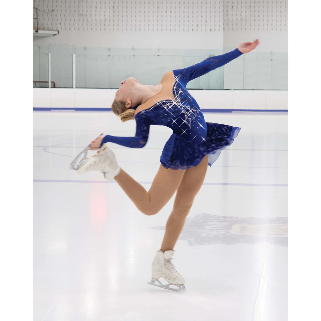 This eye-catching dress is sumptuously designed in a rich royal velvet with long glove inspired sleeves and skirt in beautifully textured burnout velvet. The simple, sophisticated off-the shoulder style and myriad of sparkling crystals make this design flattering and feminine. Lined.