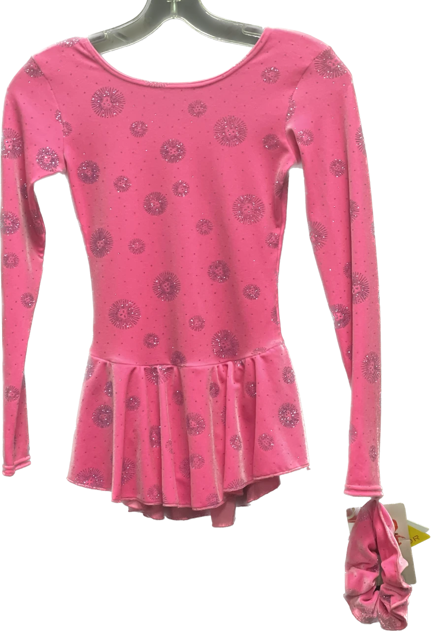 Born to Skate printed glitter velvet dress with classic cut skirt and long sleeves. Attached brief and hair tie included.