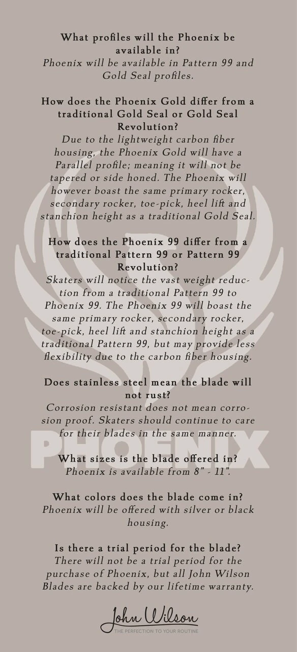 Phoenix will be available in Pattern 99 and Gold Seal profiles.