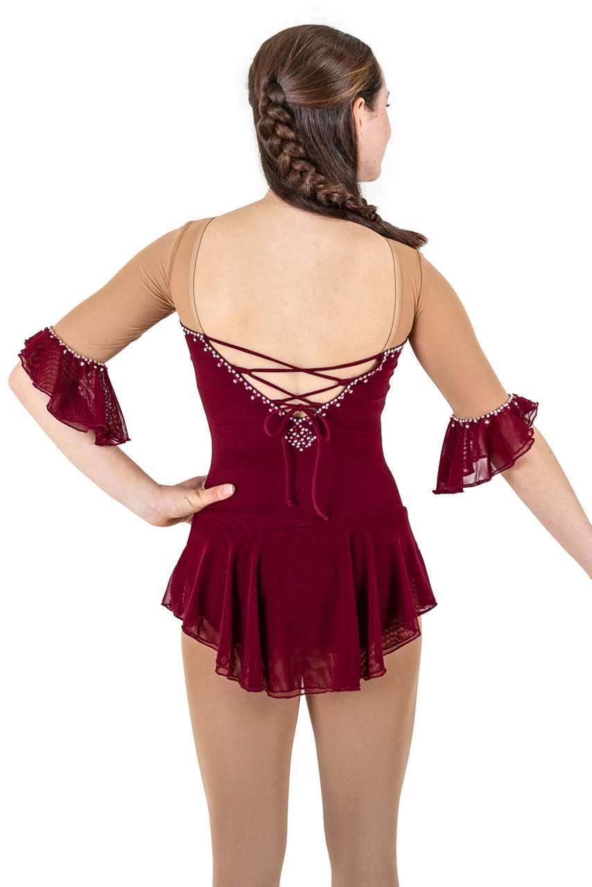 New for 2020 Posh Icewear presents this edgy asymetrical sleeveless dress. This dress is made of 4 way stretch microfiber with power mesh over top. Dress 2004 boasts an asymmetrical double mesh skirt leaving a raw finished edge for ultimate flow and motion. Posh’s 2020 line is MADE TO ORDER. Please allow 2-3 weeks for dress to be made.Â